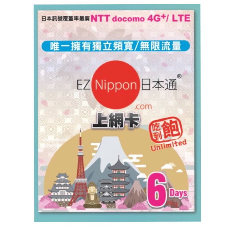 Docomo行動網卡ez Nippon 日本通 6天上網吃到飽 網路卡 日本旅遊必備 上網卡 免歸還 免綁約 蝦皮購物