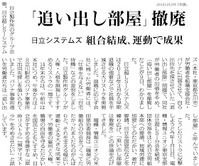 日立による大リストラから雇用と暮らしを守るために力を合わせよう 報道記事 追い出し部屋 撤廃 日立超lsiシステムズ 組合結成 運動で成果